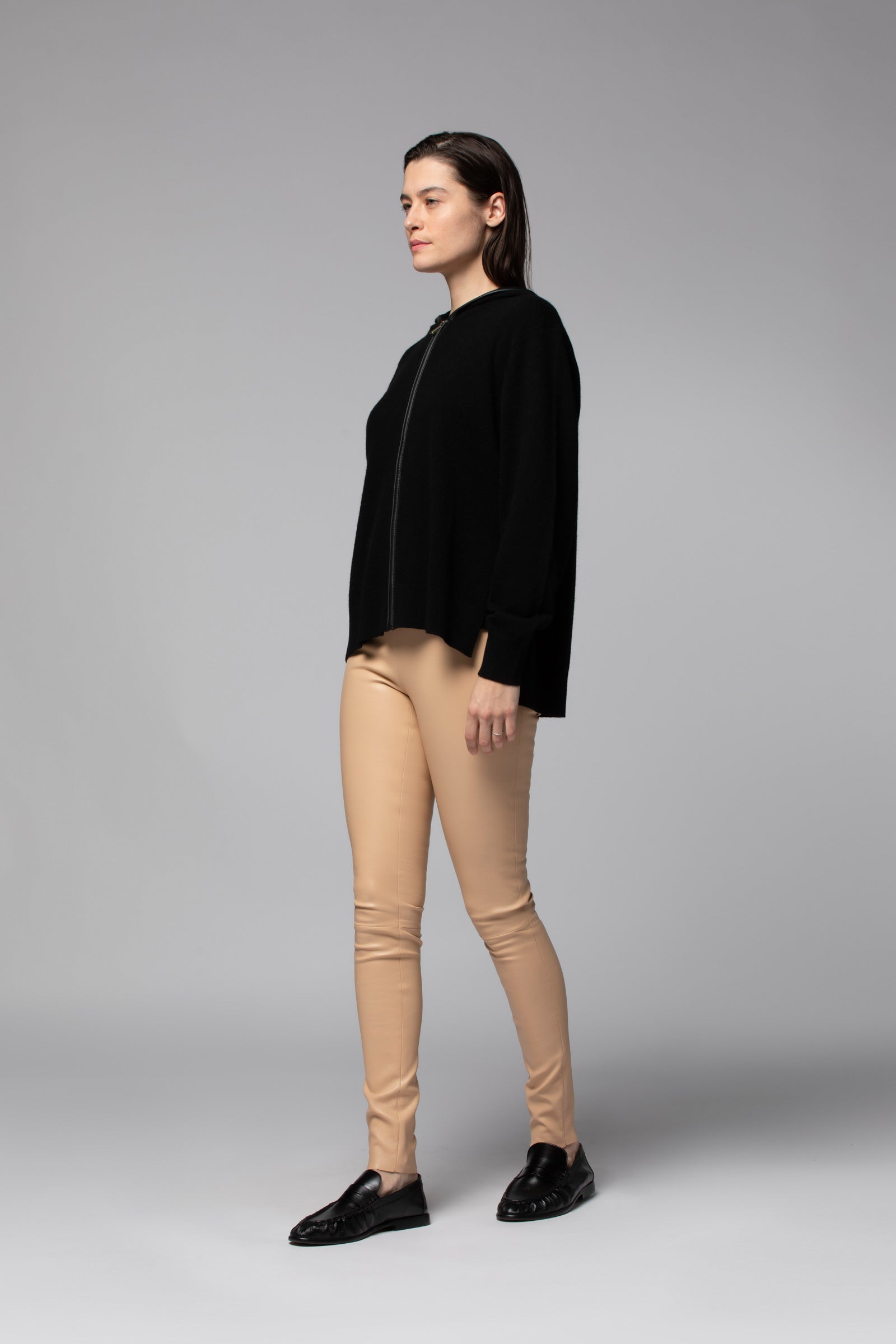À porter en total look avec un pantalon en cachemire de la collection MAX&MOI pour une silhouette effortless. Dans un esprit plus citadin, on l’associe à un jean brut ou à notre iconique legging en cuir d’agneau.